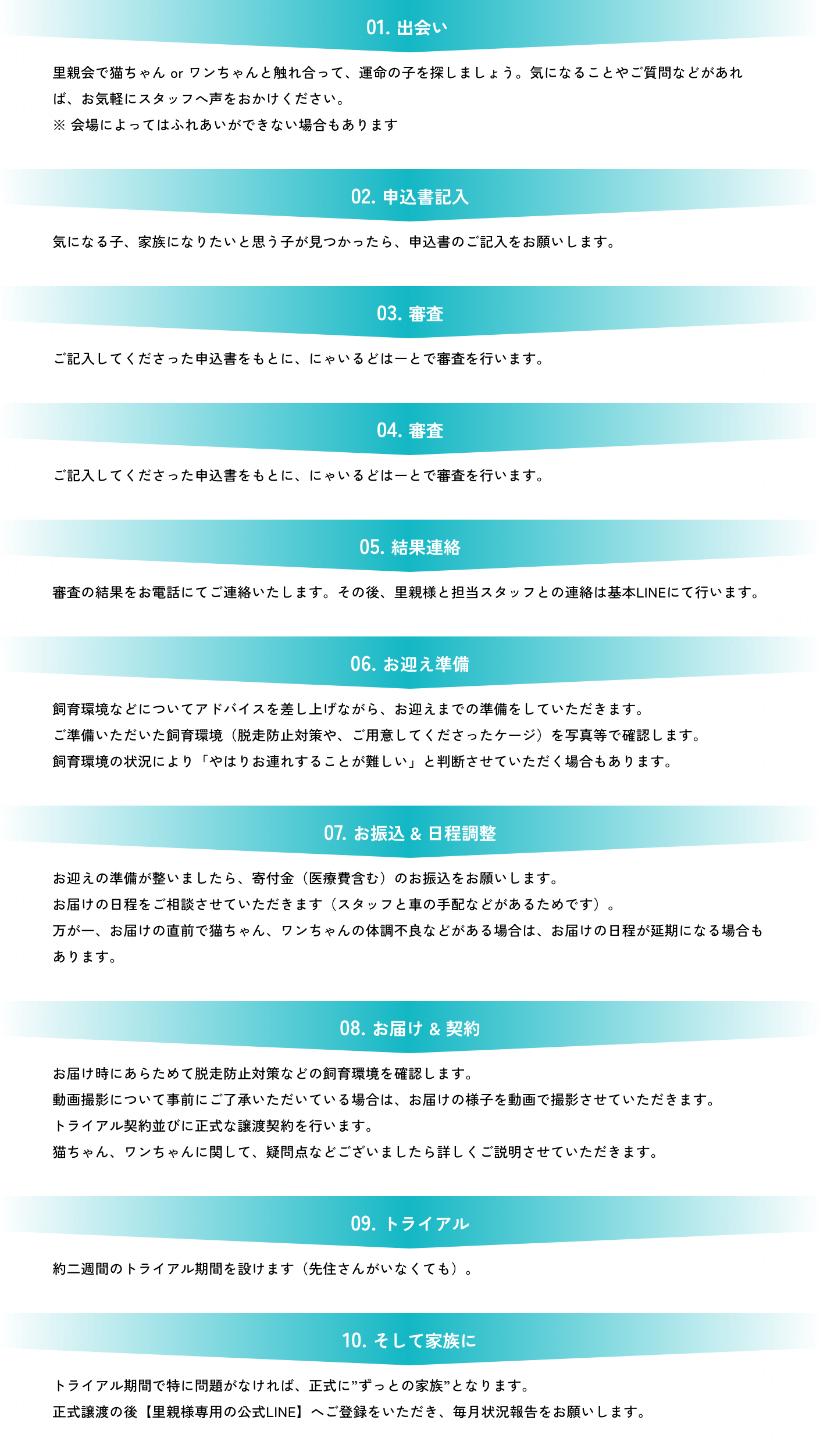 すべて健康な犬・猫だけですので、里親になったあと病院でやることは無い状態でのお渡しとなります。