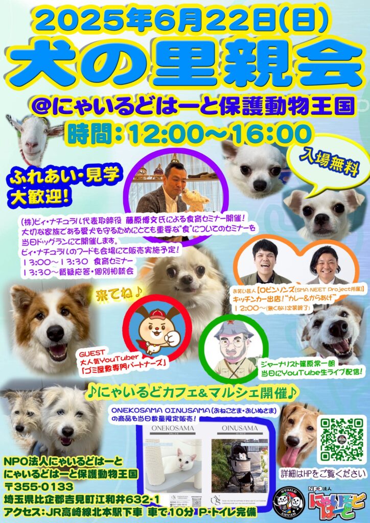 日時:2025年06月22日(日) 12:00~16:00(里親会は13:00スタート)